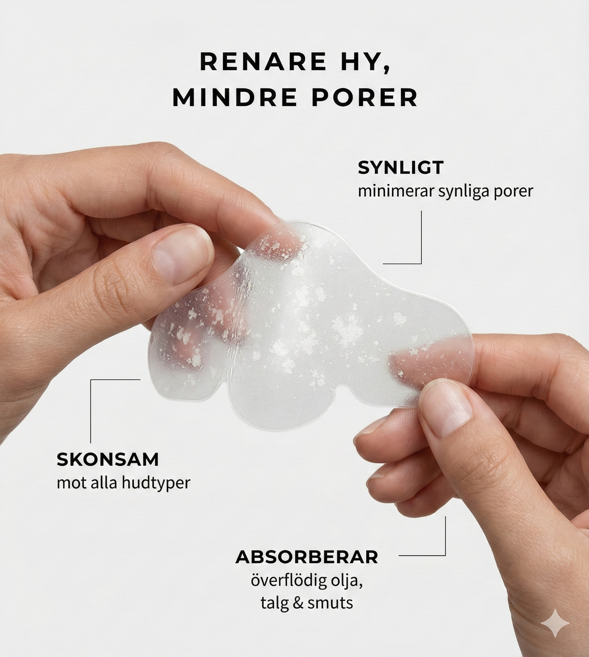 Våra Hydrokolloid-näsplåster är utvecklade för att effektivt dra ut smuts, talg och pormaskar från porerna – helt utan att irritera huden. Under natten absorberar plåstret orenheter och lämnar huden synligt renare och lugnare på morgonen.